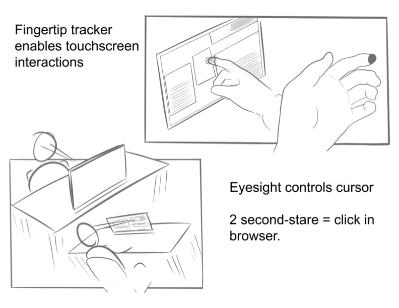 After exploring a variety of interaction models, from voice to touch, we decided a touch-based hand tracking was the most similar to users current real world experience, and would be easiest to adopt.