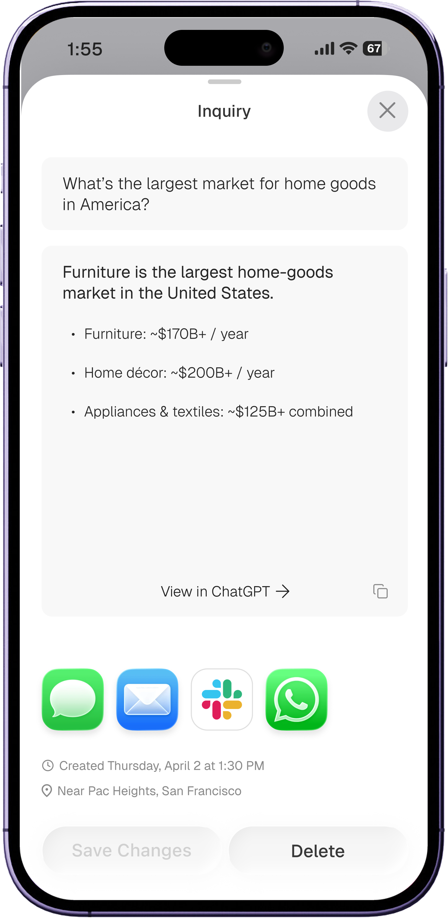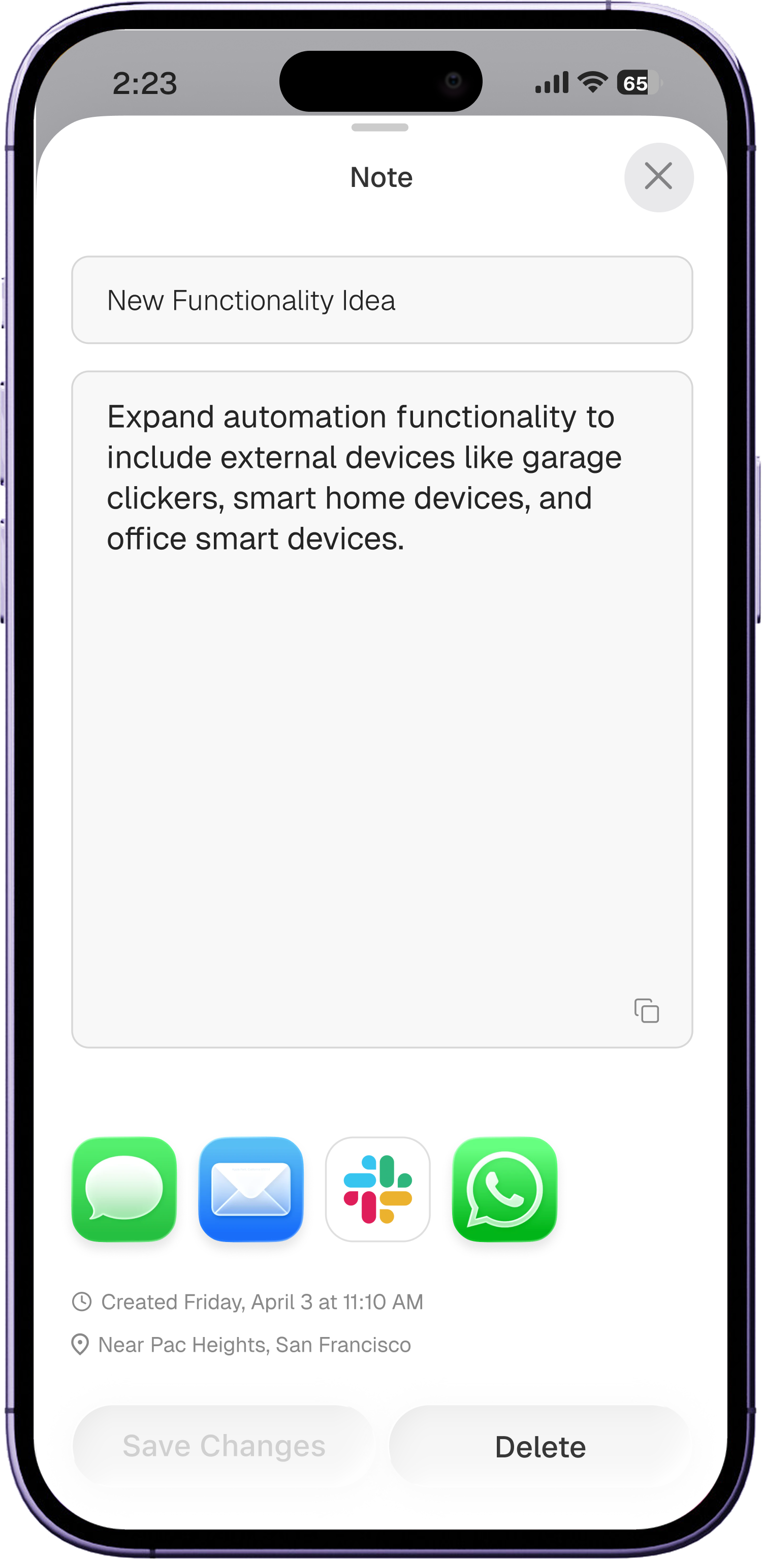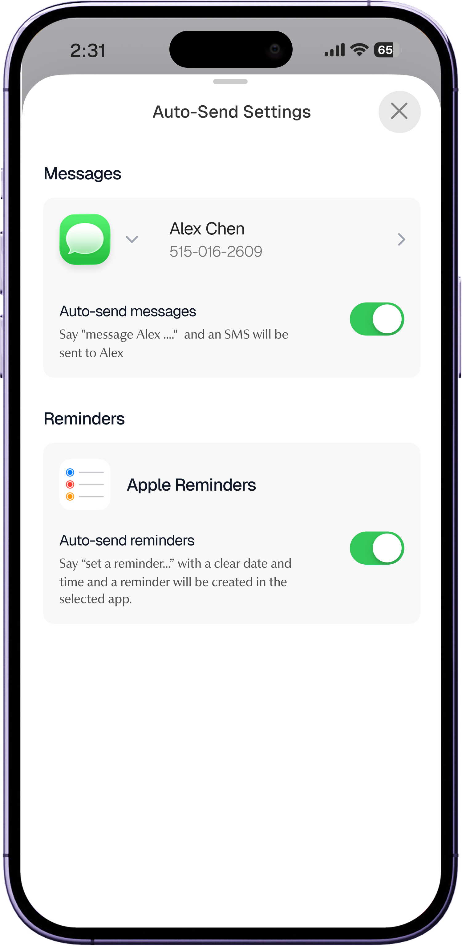 Say, “text John ....” to send a text or Slack message to that contact.